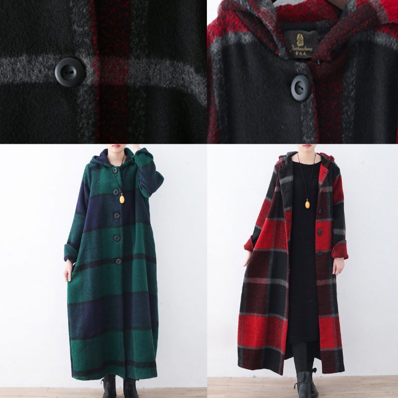 2024 Grön Yllerock Casual Trenchcoat Rutiga Långa Kappor Med Huva