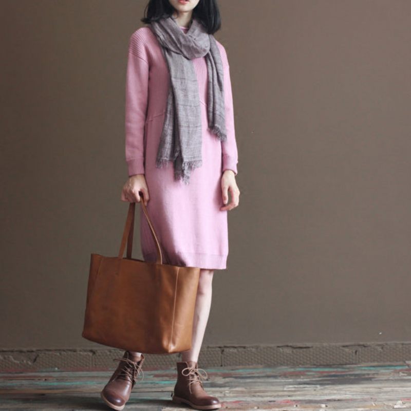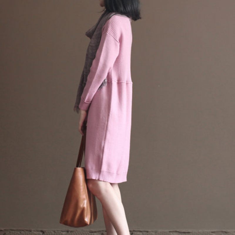 Vinter Rosa Kanin Ullblandad Tröja Klänningar Lös Vintage Stickad KlänningDenna Klänning Är Gjord Av Bomull Eller Linne, Mjuk Och Andas.