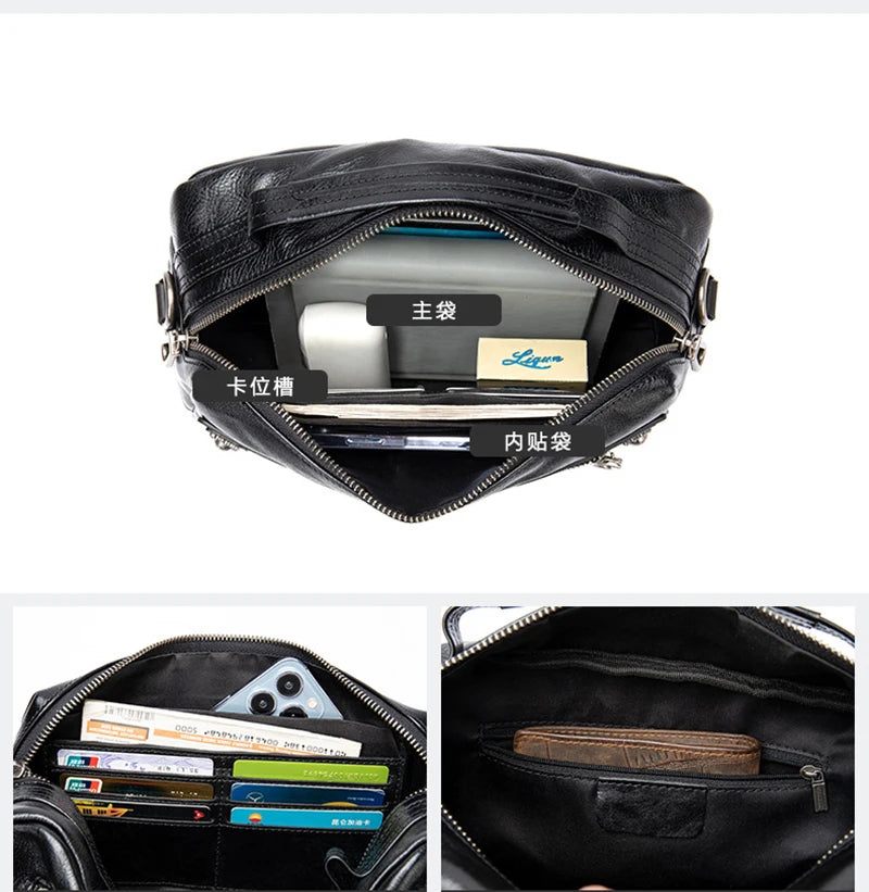 Äkta Läder Herrväska Mjukt Kvinnor Axelväska Casual Crossbody-väska Portfölj Svart
