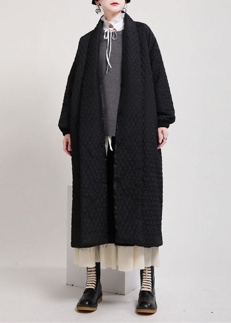 Art Black Oversized Side Open Fine Cotton Fyllda Puffers Coats Winter