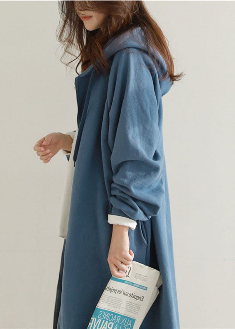 Blå Fickor Med Dragkedja I Varma Fleecerockar Hooded Spring