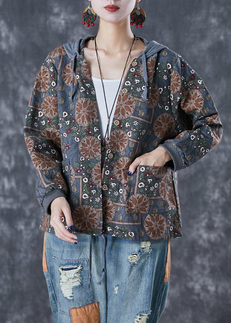 Blå Grå Patchwork Bomullsjackor Hood Print Fall
