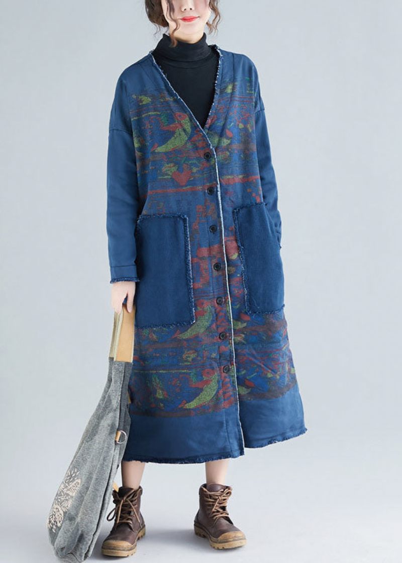 Blåtrycksfickor Varm Fleece Cardigan V-ringad Vinter
