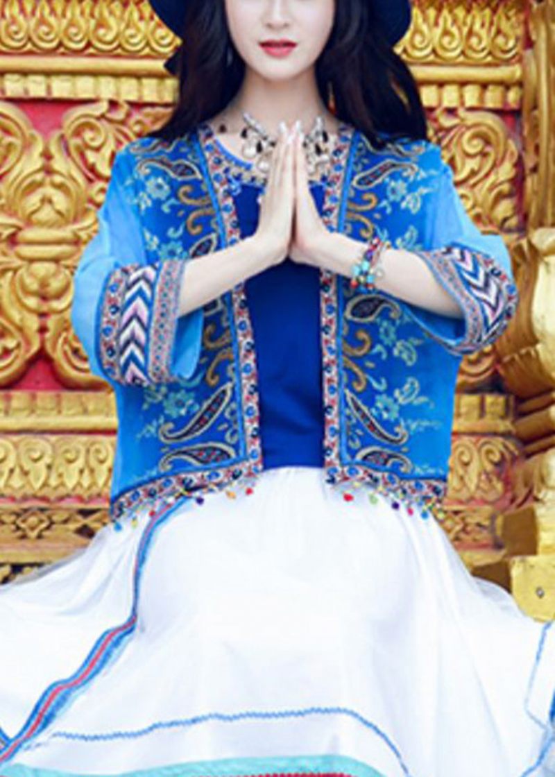 Bohemian Blue V-neck Print Tofs Cardigan Summer
