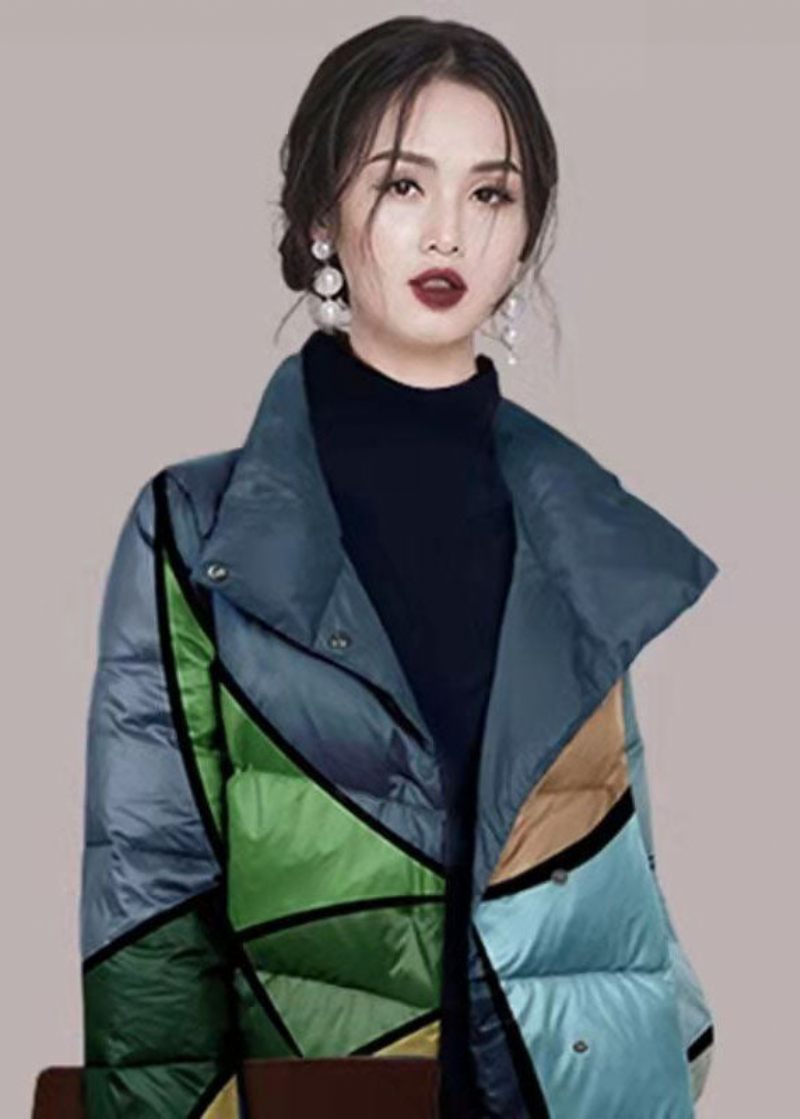 Bohemian Colorblock Stand Collar Print Fine Cotton Fyllde Puffers Jackor Winter