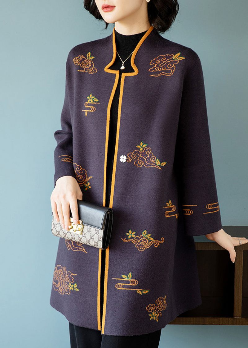 Bohemian Mörklila Stativ Krage Broderade Patchwork Ullrockar Höst
