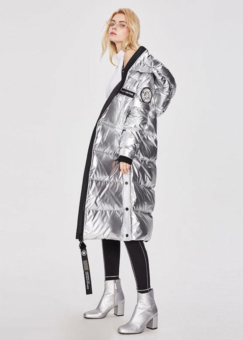 Bohemian Silvery Stand Krage Zip Up Side Öppen Duck Down Winter Förläng Kappor
