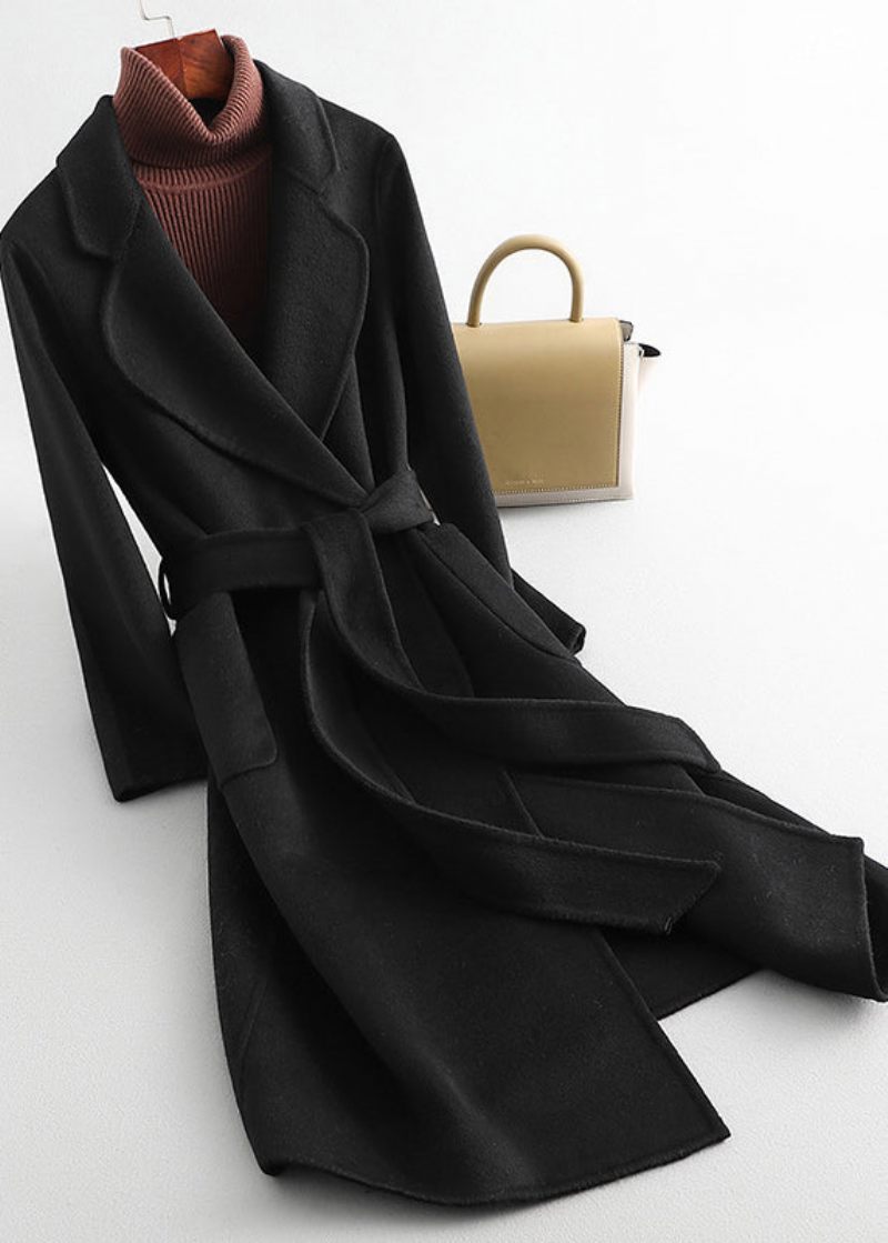 Bohemian White Notched Tie Midja Ull Långa Kappor Höst