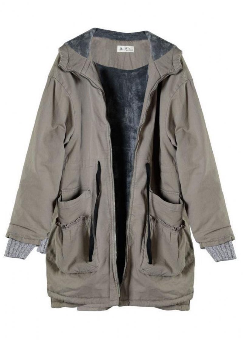 Boho Ljusgröna Hooded Fickor Vinter Tie Midja Cotton Puffer Jacka Långärmad