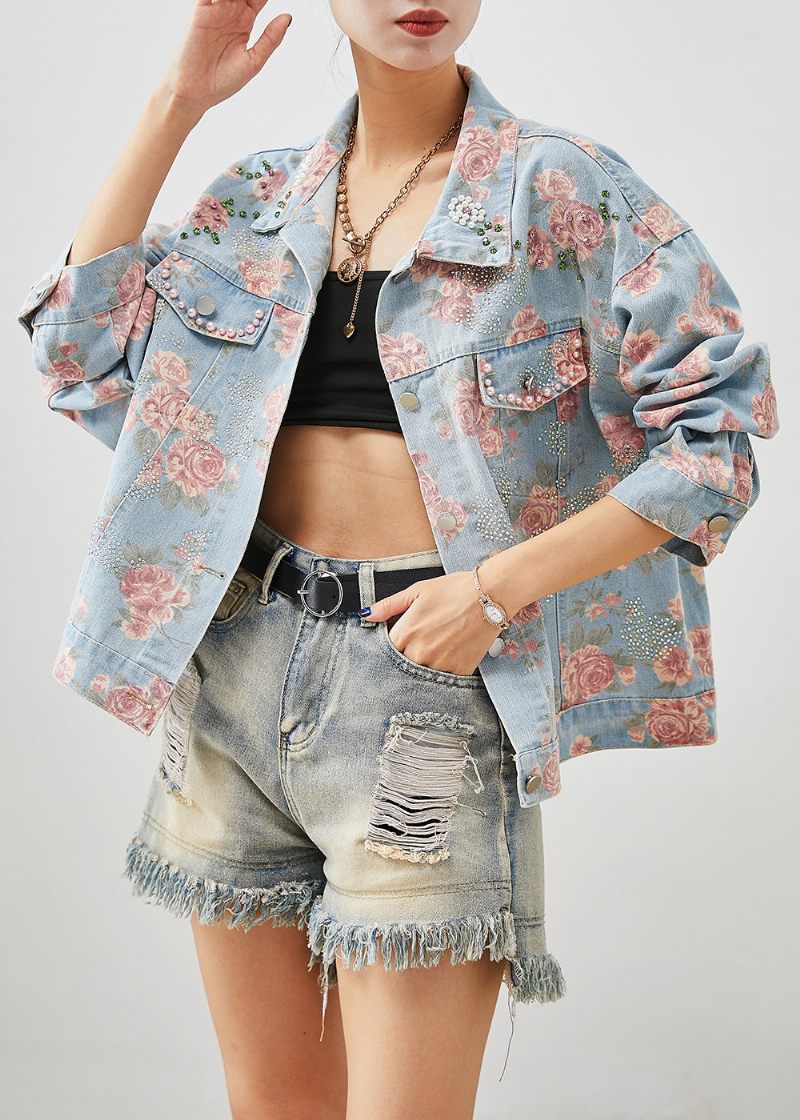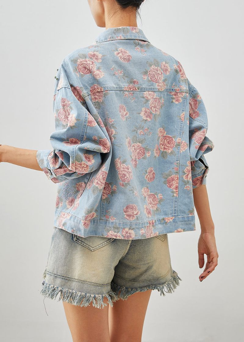 Boutique Blue Nail Bead Rose Print Denimrockar Höst