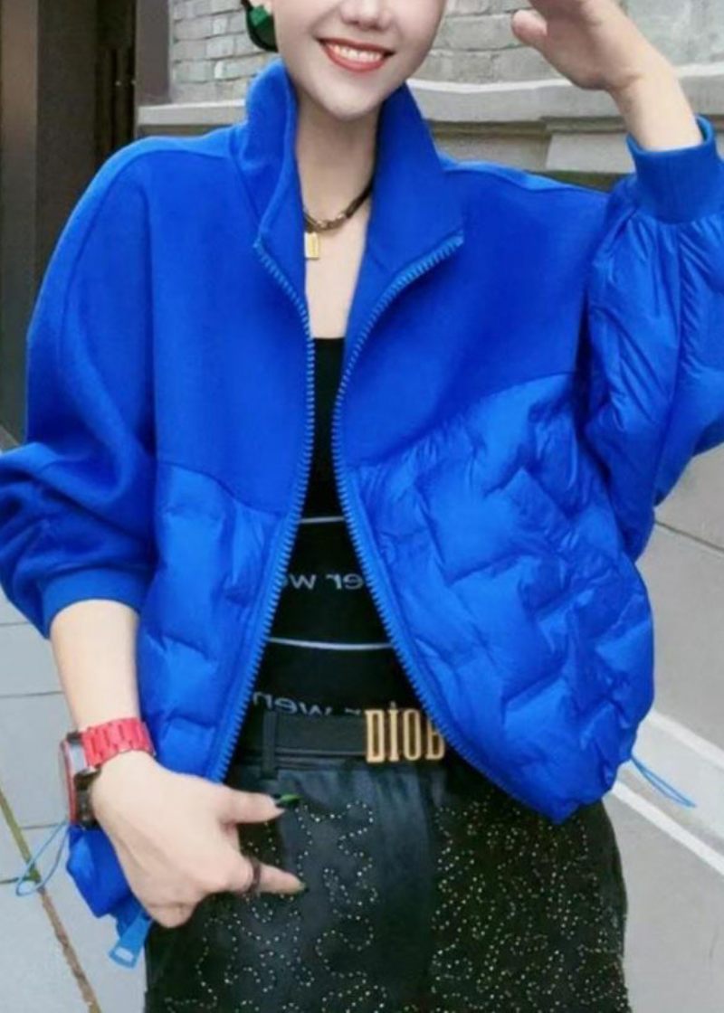 Boutique Blue Zip Up Woolen Patchwork Duck Down Puffer Coat Vinter