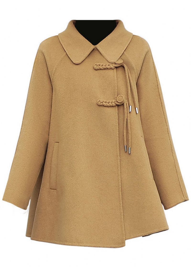 Boutique Camel Tofs Kinesisk Button Yllerock Vinter