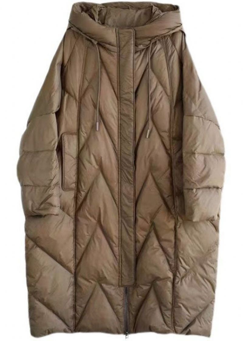 Boutique Choklad Hooded Dragsko Fickor Duck Down Puffer Jacka Vinter