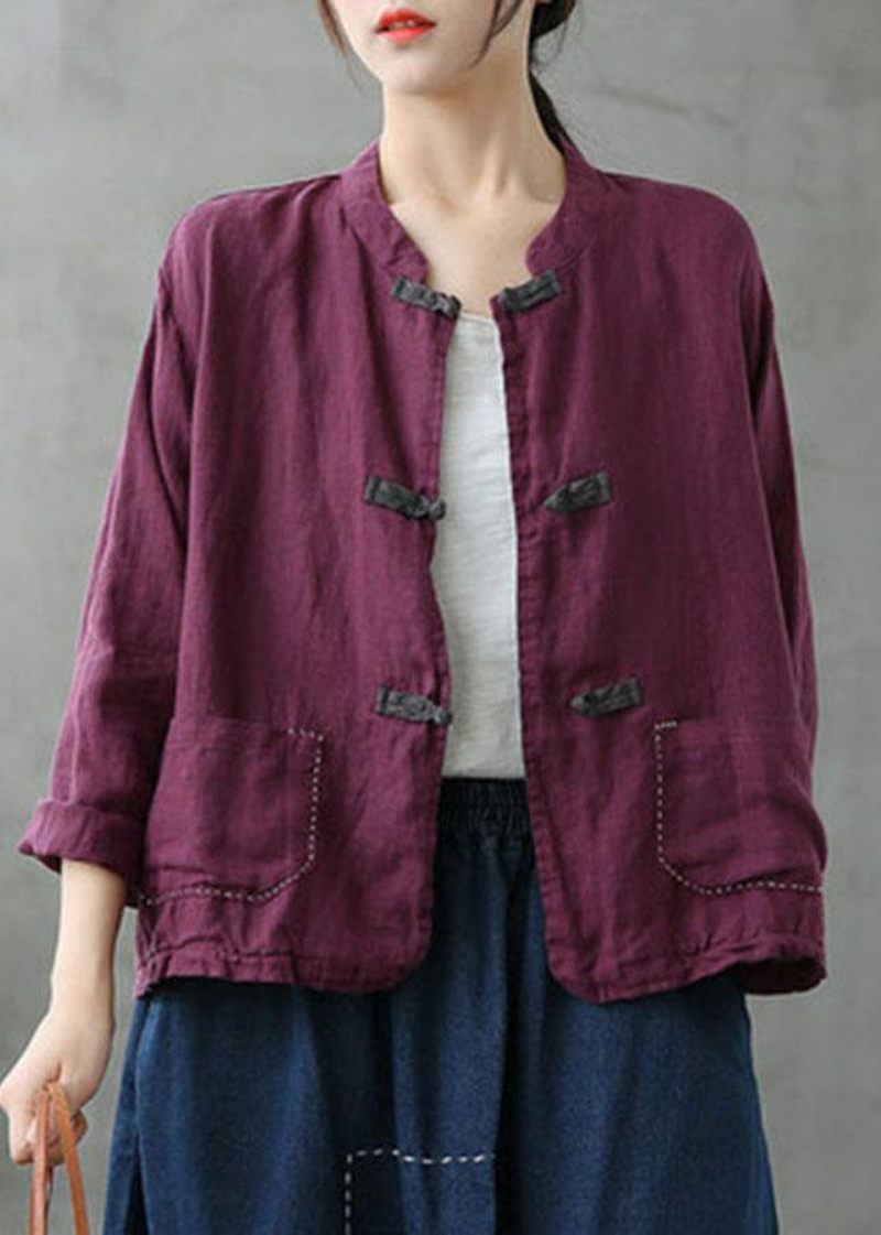 Boutique Grön Stativ Krage Broderad Patchwork Linnekappa
