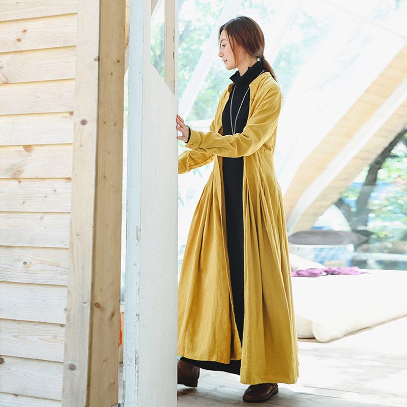 Boutique Gula Kappor Casual Stativ Krage Trenchcoat Mode Skrynklig Stor Fåll KappaDenna Klänning Är Gjord Av Bomull Eller Linnetyg, Mjuk Och Andas.