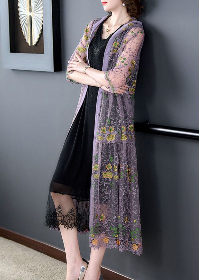 Boutique Lila Hooded Broderade Patchwork Tulle Cardigans Sommar