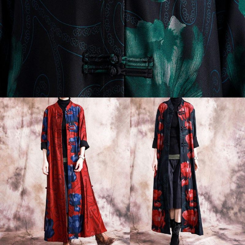 Boutique Plus Size Vinterkappa Höst Damrockar Svart Lapptäcke Grönt Tryck Kinesisk Knappkappa För Kvinna