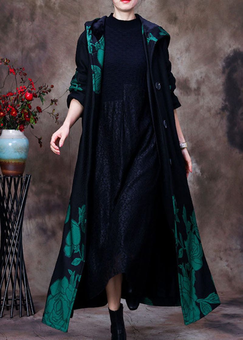 Boutique Röd Hooded Print Varm Fleece Coat Winter