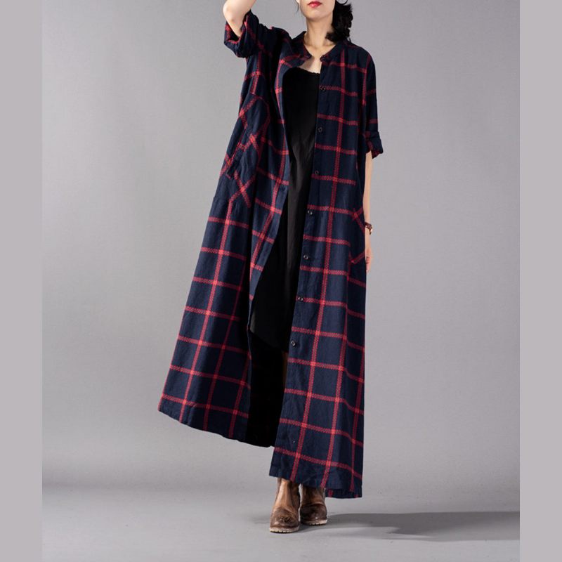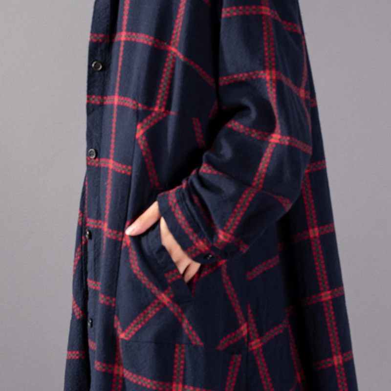 Boutique Röd Rutig Kappa Plus Size Klädstativ Krage Kappor Boutiquefickor