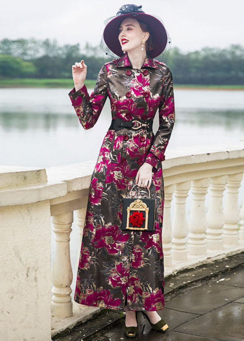 Boutique Rose Double Breast Print Fin Bomullsfylld Dam Trench Winter