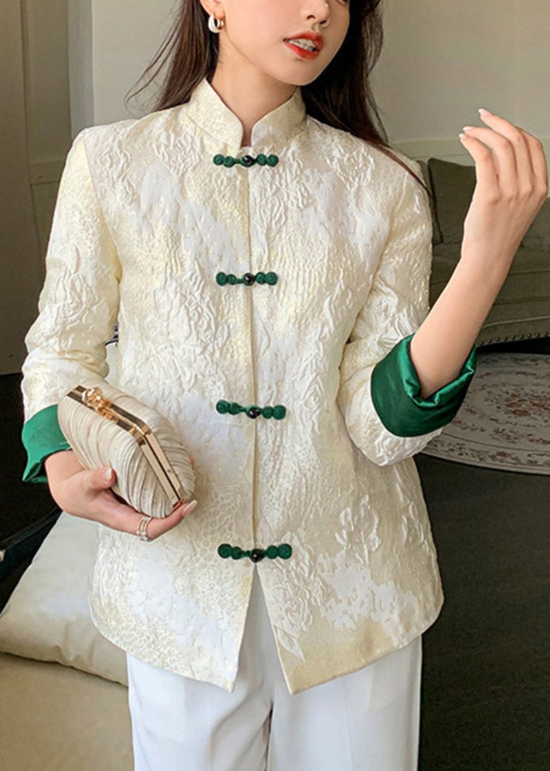 Boutique Vit Stativkrage Jacquard Sidenkappa Långärmad