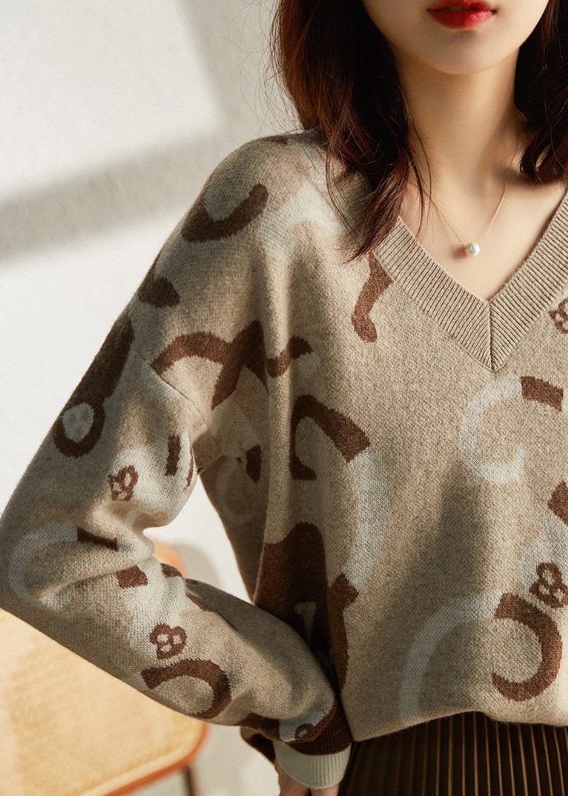 Brief Camel V-ringad Yllestickad Tröjor Långärmad