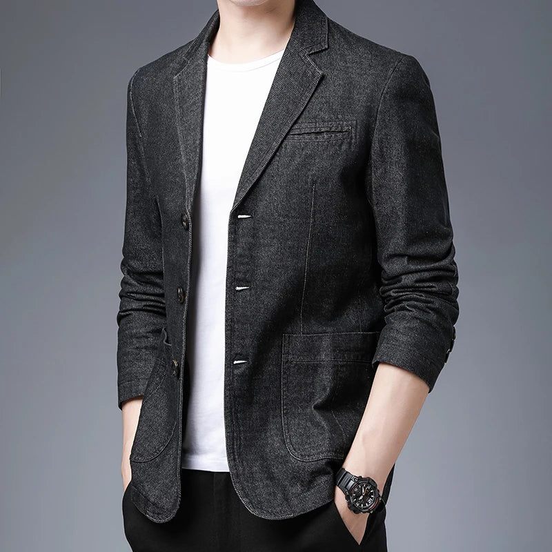 Brittisk Stil Fritid Slim Version Av The Trend Solid Denim Bekväm Blazer För Män
