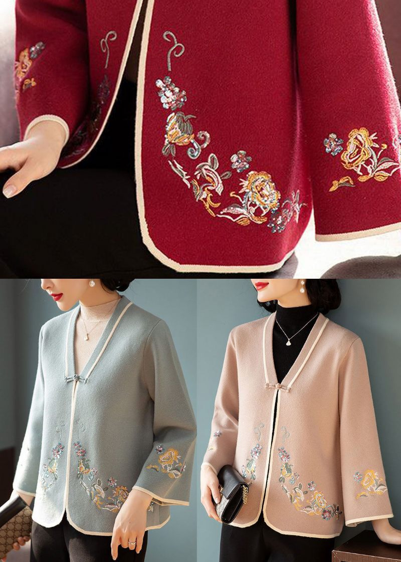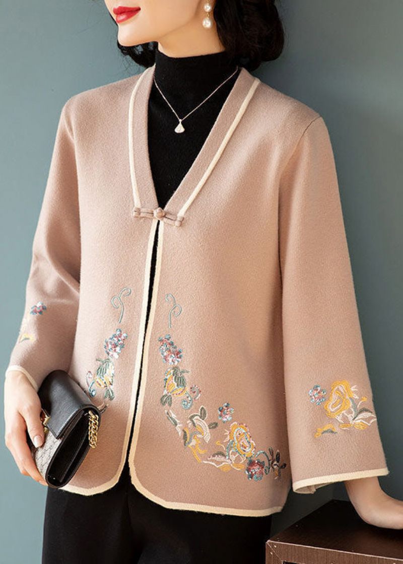 Camel Oriental Woolen Coat Ytterkläder V-halsbroderad Långärmad