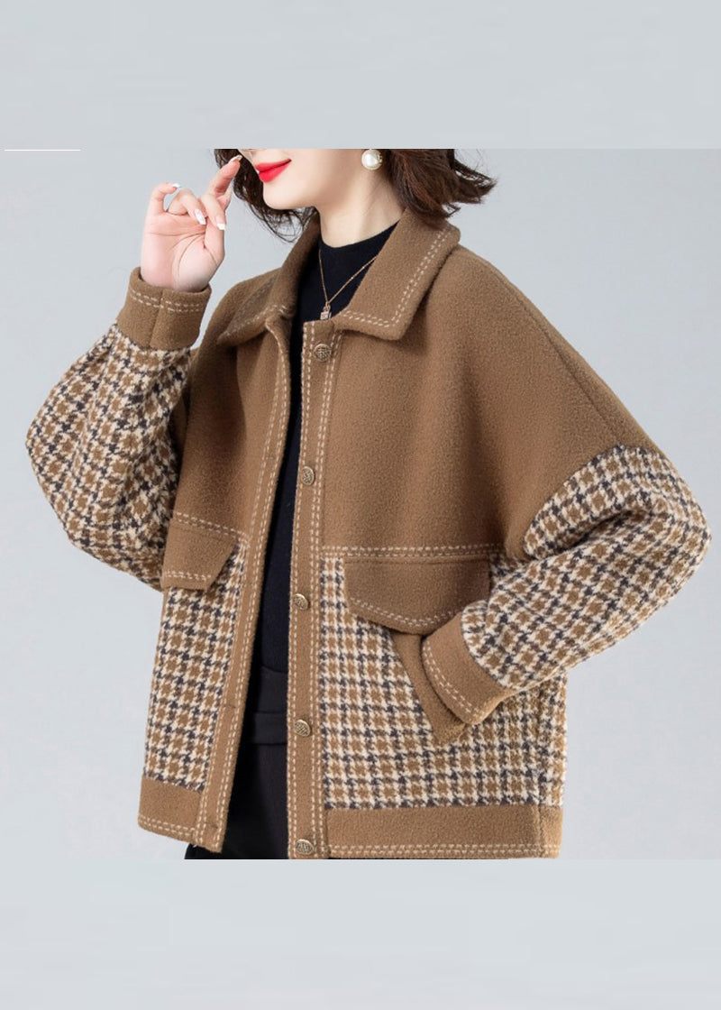 Casual Camel Peter Pan Collar Print Patchwork Coats Långärmad