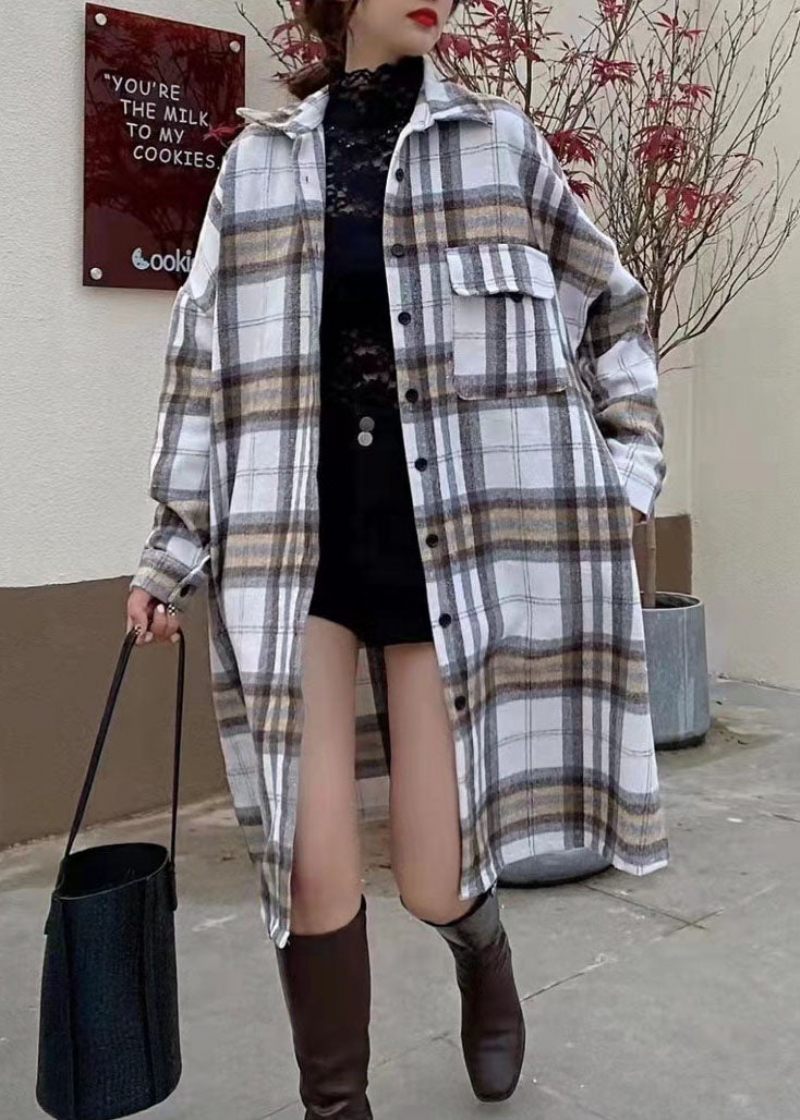 Casual Colorblock Peter Pan Krage Pläd Patchwork Bomullsskjortor Kappor Vår