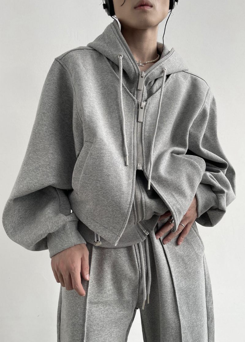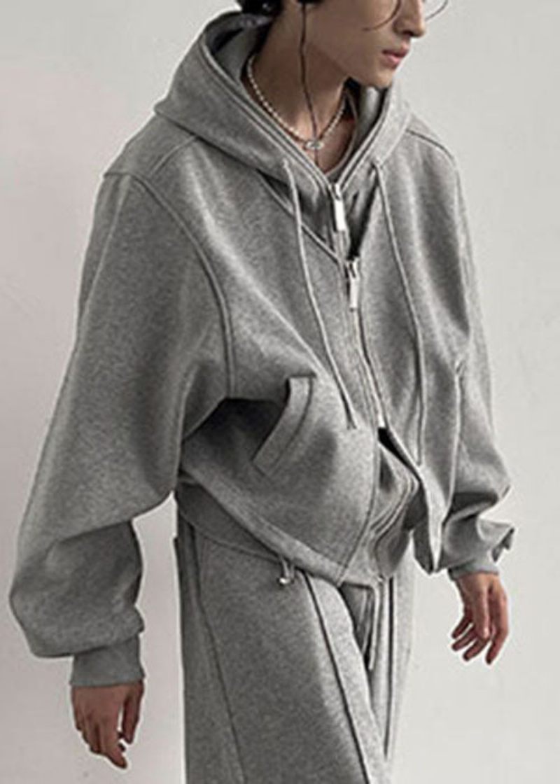Casual Grå Huva Patchwork Blixtlås Bomull Falska Tvådelade Kappor Våren