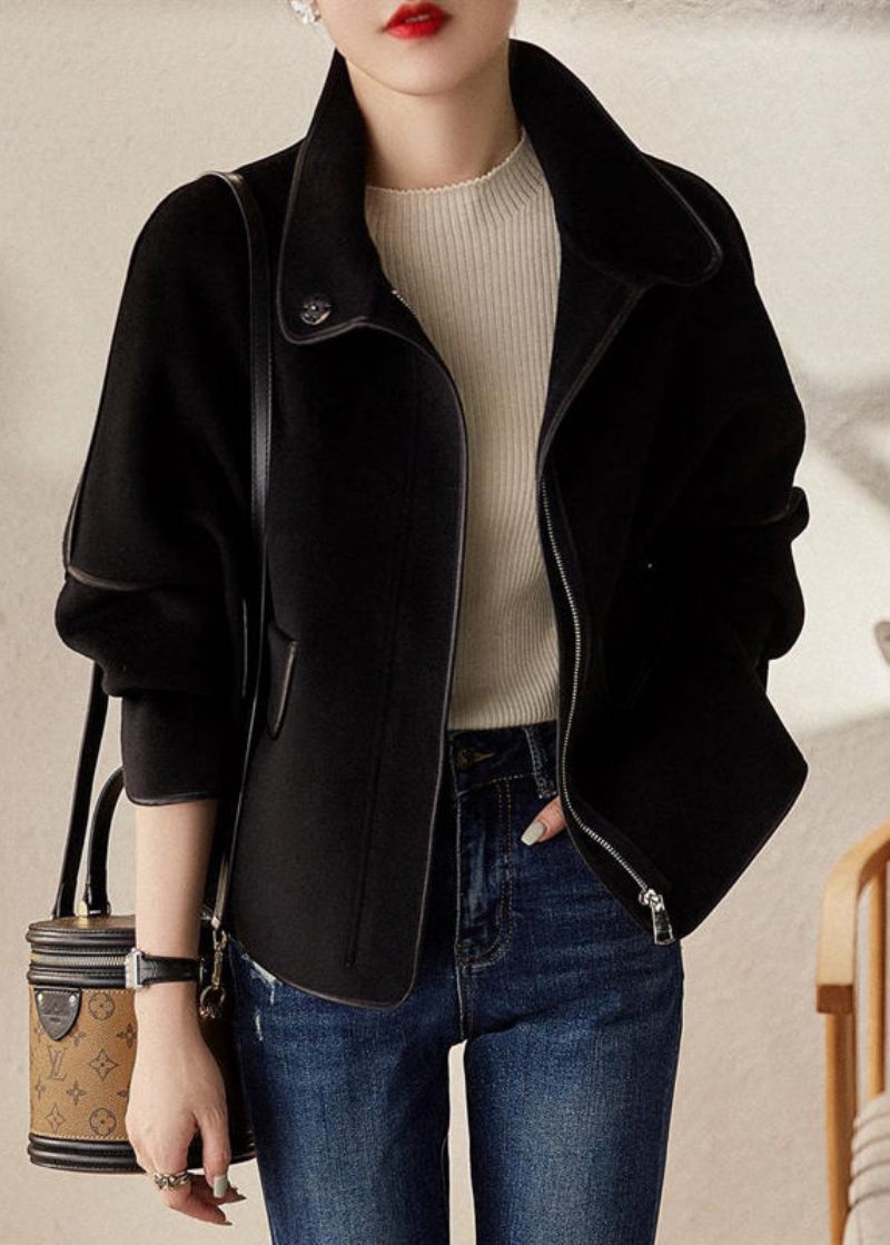 Casual Grå Stativ Krage Dragkedja Patchwork Yllerockar Höst