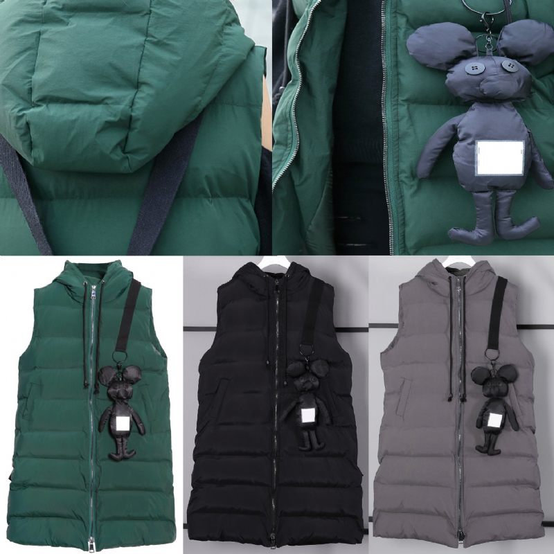 Casual Grön Dunjacka Plus Size Parkas Med Dragkedja Med Huva Ärmlös Djuröverrock
