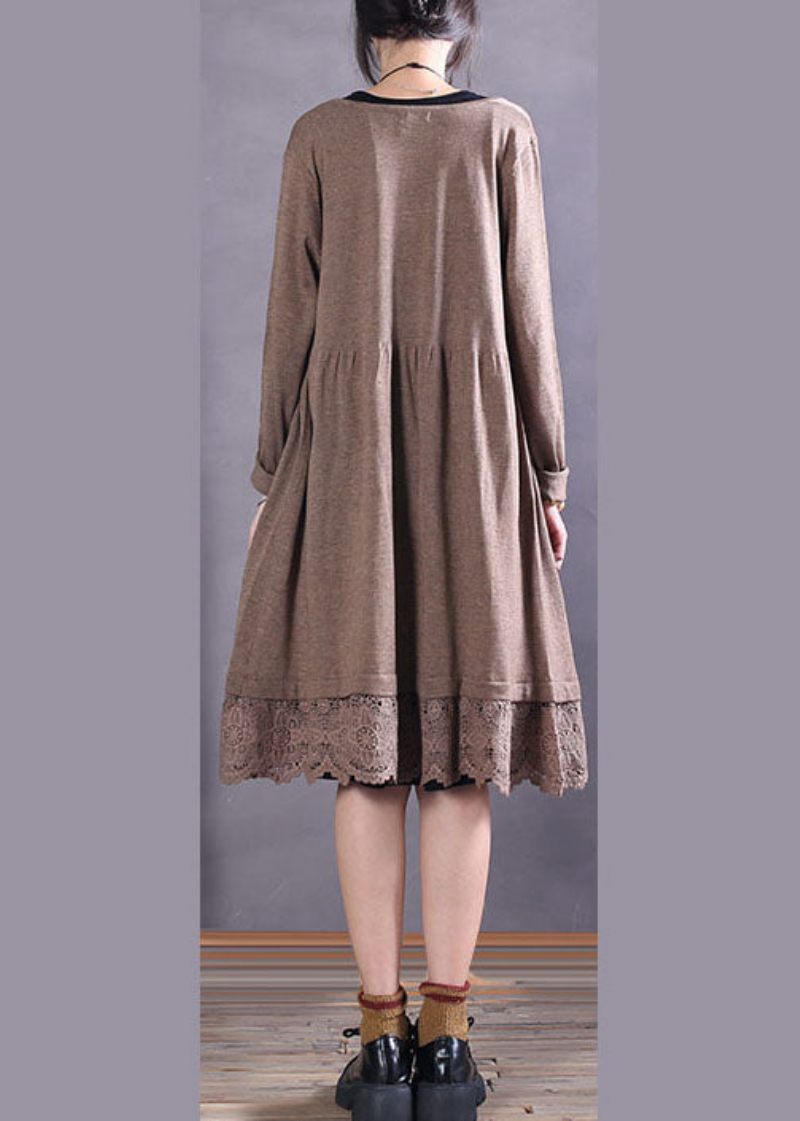 Casual Khaki Button Hollow Out Patchwork Stickad Cardigan Spring