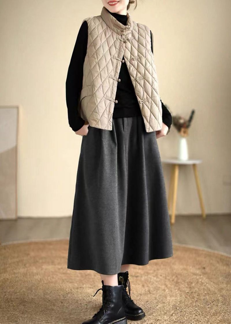Casual Matt Grå Elastisk Midja Tjocka Yllekjolar Våren