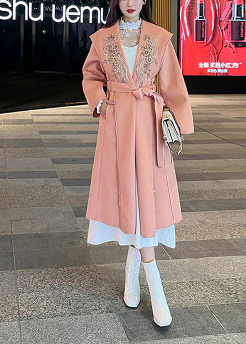 Casual Orange Rosa Broderad Dekorerad Slips Midja Yllerockar Höst