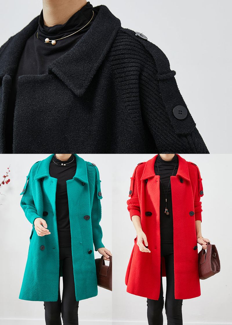 Casual Svart Dubbelbröst Patchwork Ylle Trenchcoats Höst