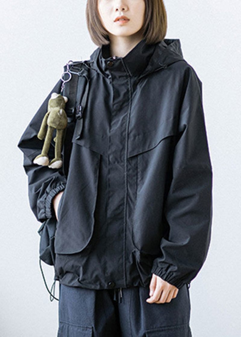 Casual Svarta Patchwork-knappfickor Med Dragkedja Med Hoodies Långärmad