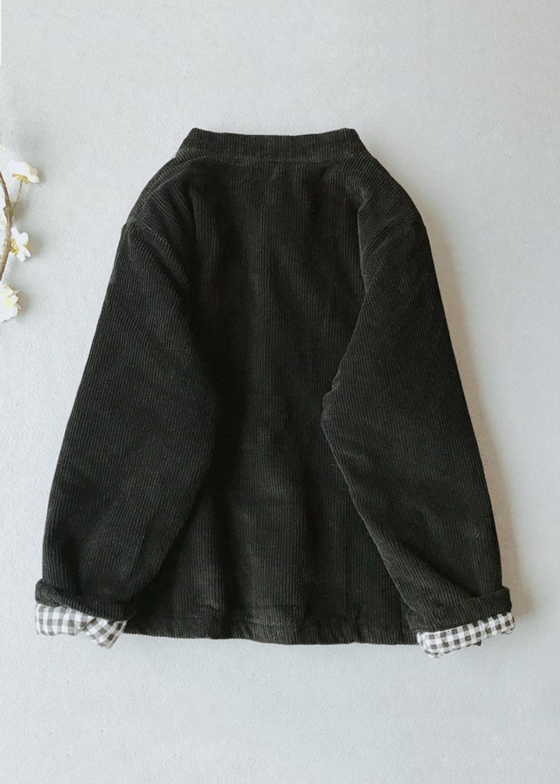 Casual Svartgrön O-halsfickor Tjock Manchester Parka Vinter
