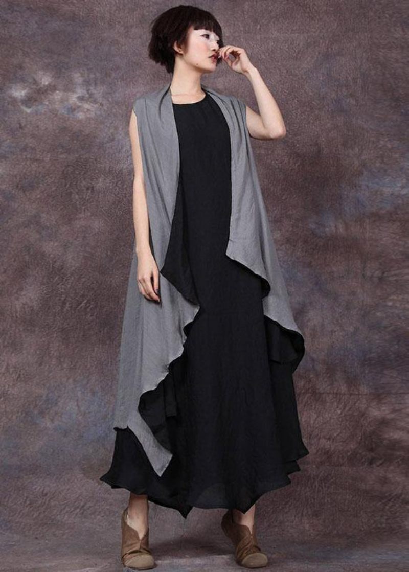 Chic Choklad Linne Ytterkläder Ärmlös A Line Sommar Cardigan