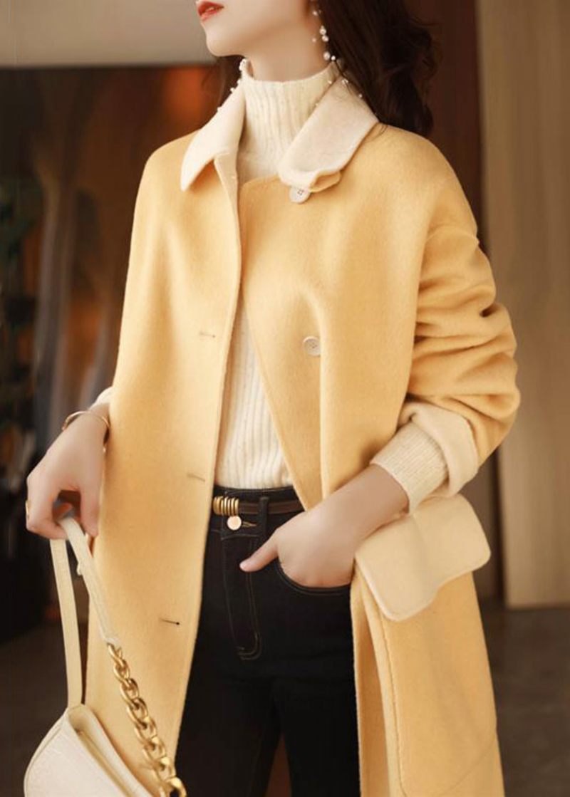 Chic Grå Knappfickor Patchwork Ylle Lång Kappa Höst