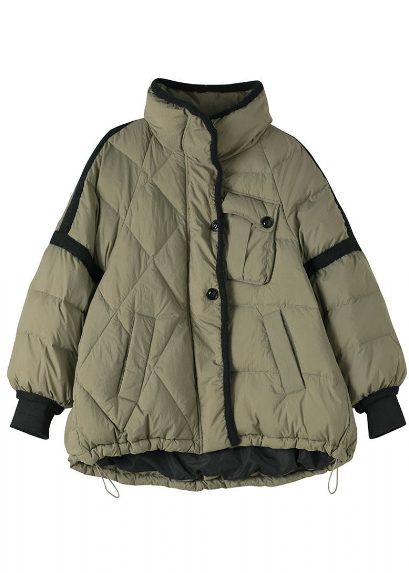 Chic Green Zip Up Patchwork Duck Down Puffer Jacka Vinter