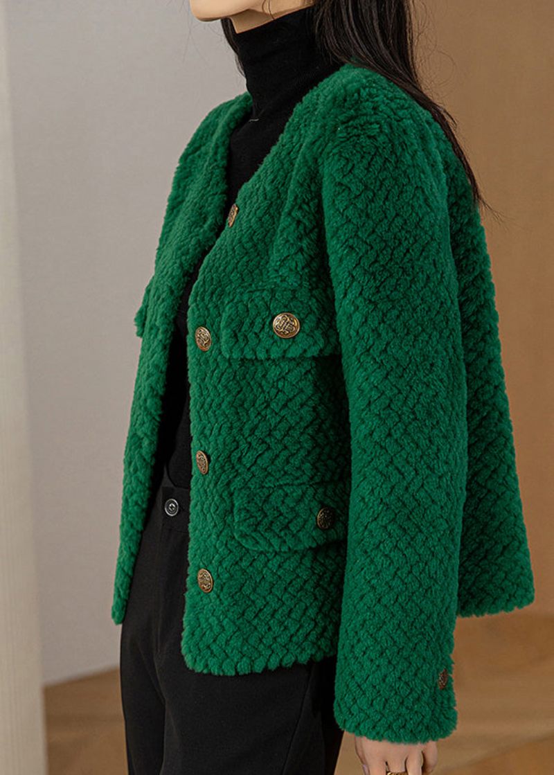 Chic Grön O-ringad Yllerock Med Knapp Med Lång Ärm