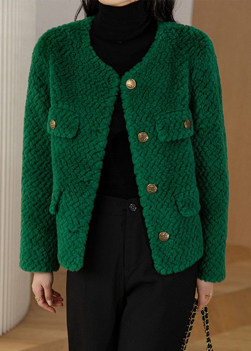 Chic Grön O-ringad Yllerock Med Knapp Med Lång Ärm