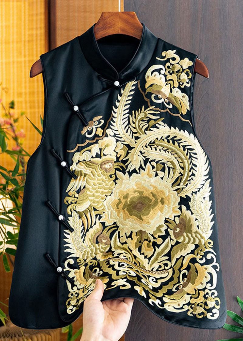 Chic Gul Stativ Krage Broderad Sida Öppen Sidenväst Höst