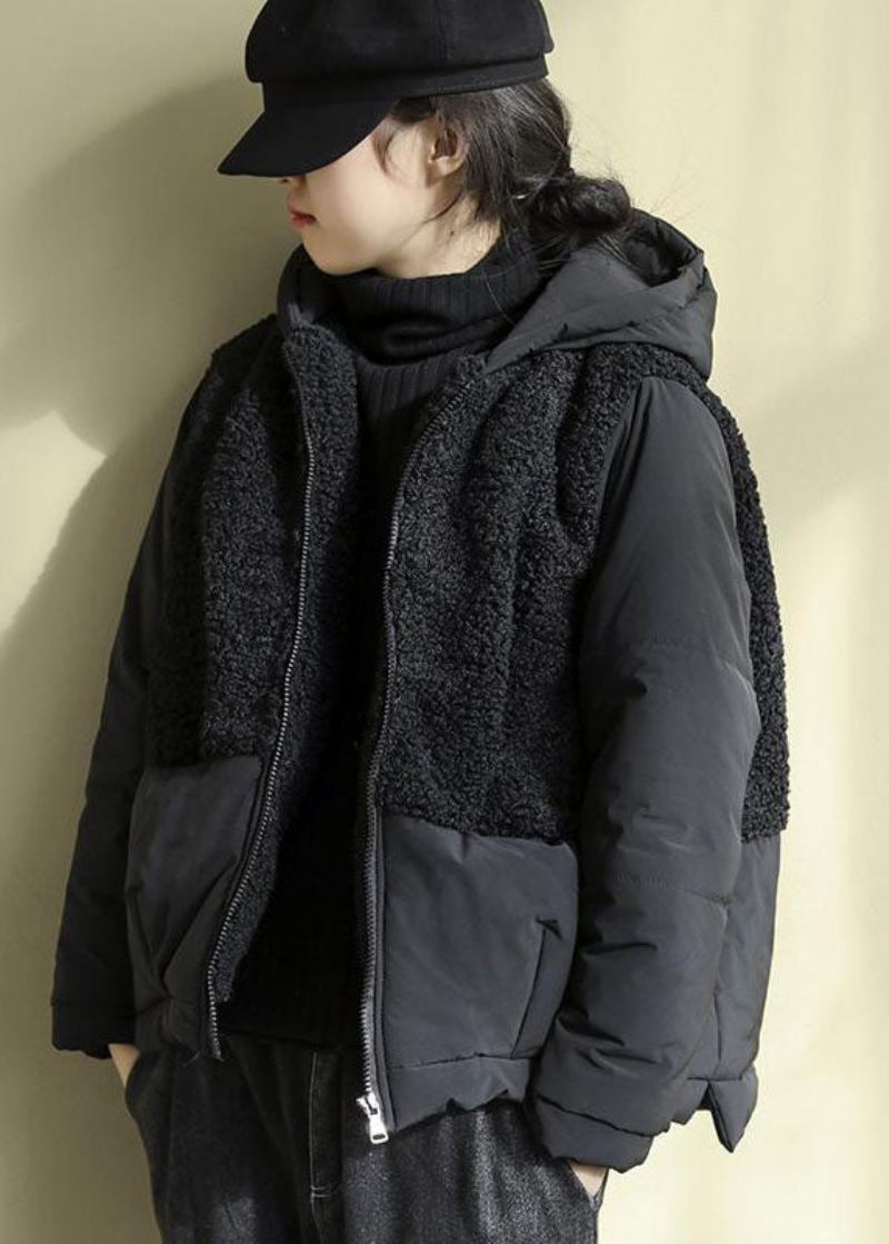 Chic Svart Luva Patchwork Parkas Med Dragkedja I Fuskpäls Vinter