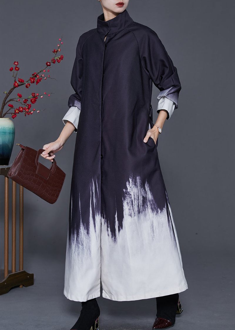 Chic Svart Överdimensionerad Tie Dye Cotton Trench Coat Spring