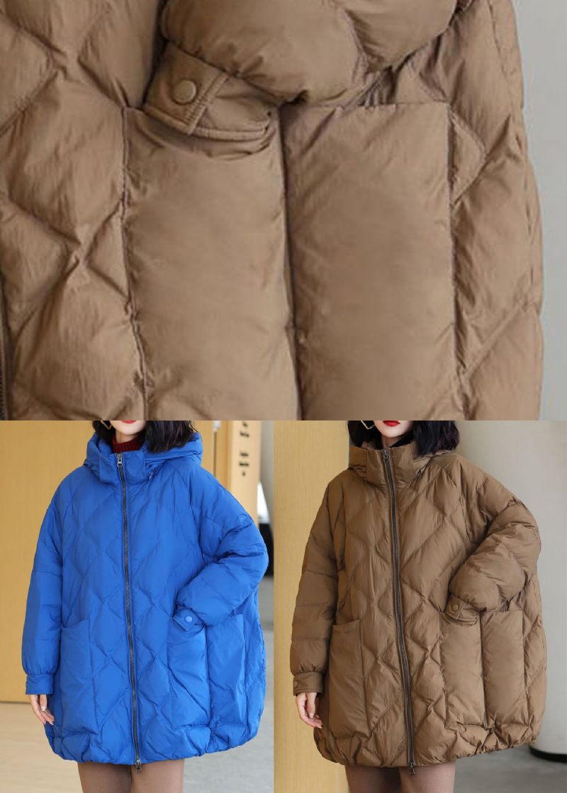 Choklad Tjock Duck Down Puffer Jacka Huvfickor Vinter