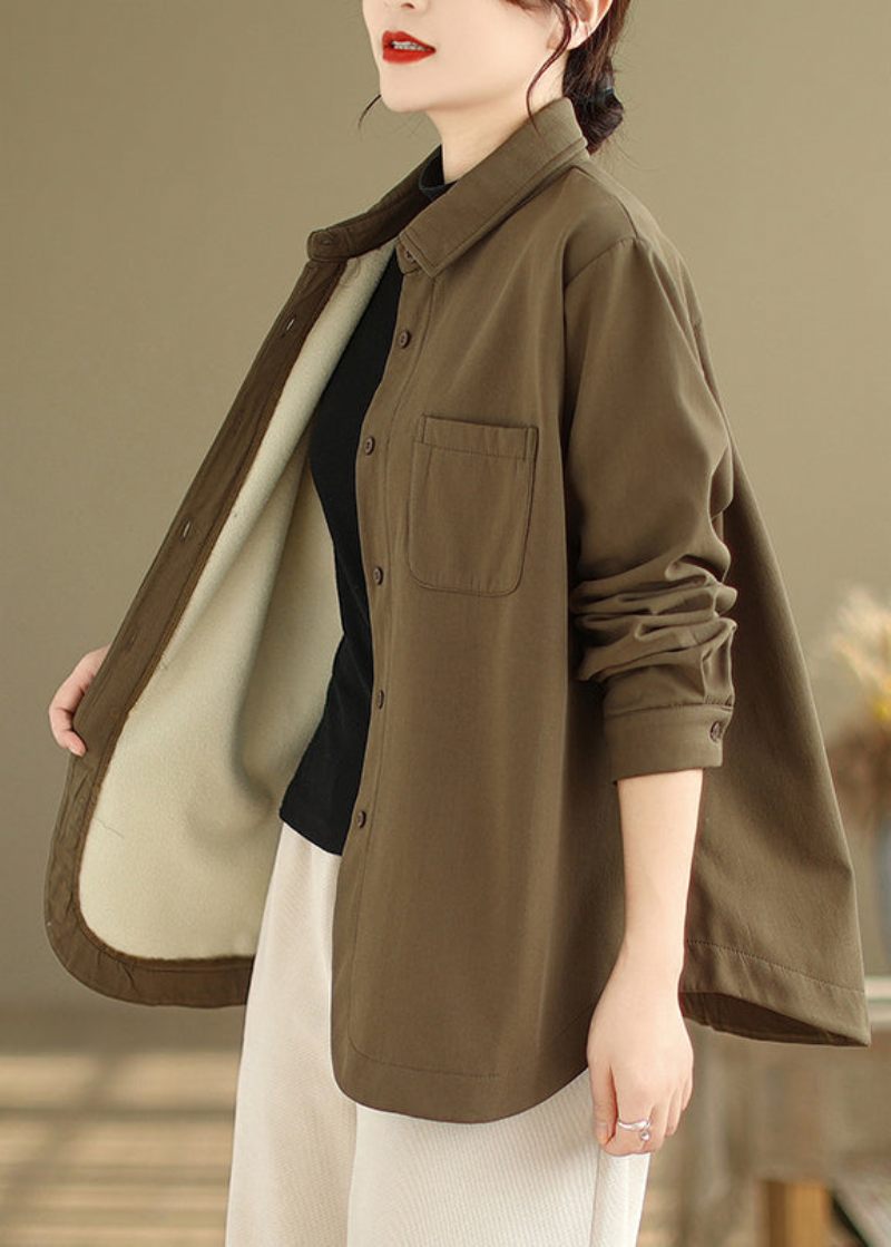 Choklad Varm Fleece Ull Fodrad Kappa Överdimensionerade Fickor Vinter