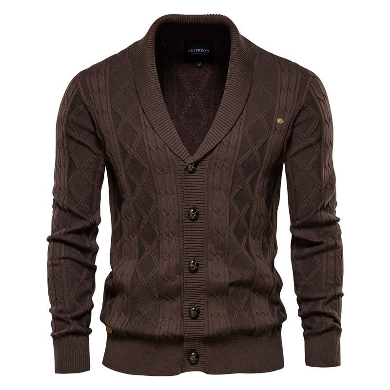 Cotton Argyle Cardigan Herr Casual Single Breasted Solid Business Vintertröja Man